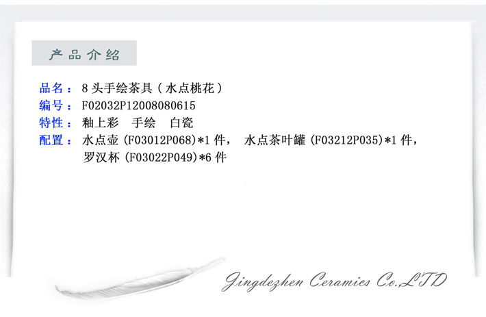 8头手绘茶具(水点桃花)
