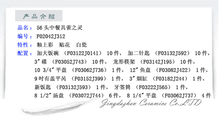 56头中餐具雀之灵