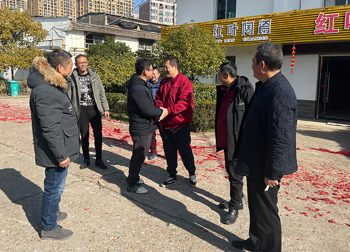 陈渊、章彧到红叶公司三厂给干部职工拜年