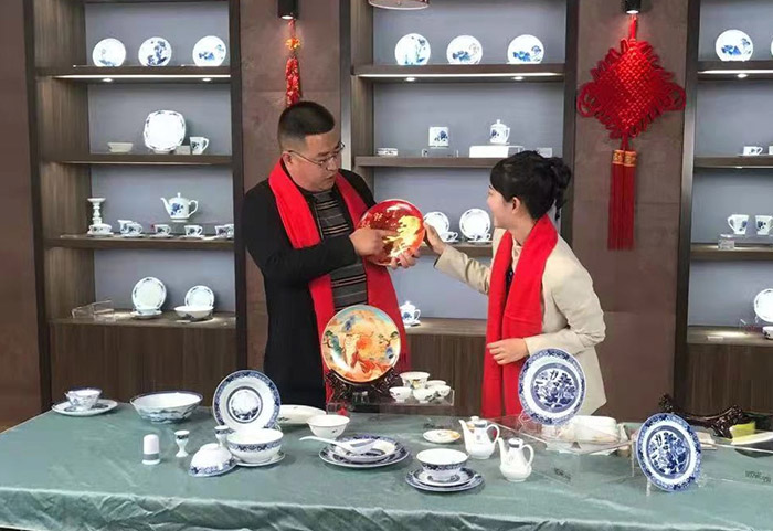 2021年12月30日,景德镇九游平台集团联合江西省电视台——都市频道及景德镇资深头部直播团队全方位宣传展示国瓷红叶产品,并以优惠价格回馈广大消费者。集团党委委员邢浩作为企业形象“代言人”,走进直播间,传播九游平台文化,宣介“国瓷红叶”特色。