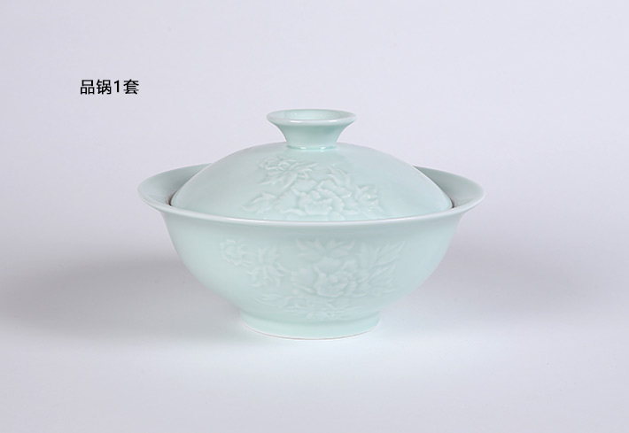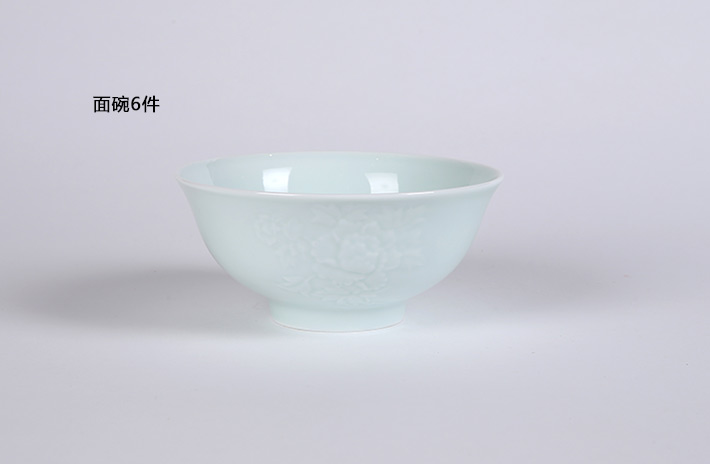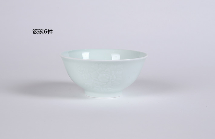 32头影青雕刻餐具--牡丹花