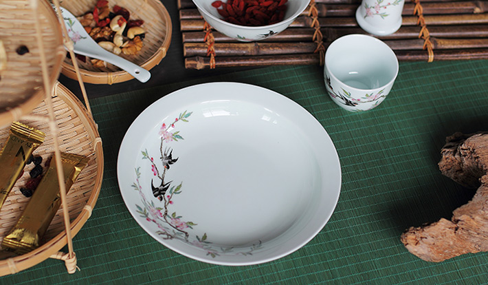 22头青釉中餐具--燕子桃花