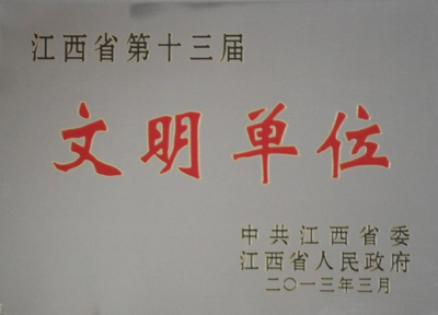 近日,省委、省政府下发通报,表彰江西省第十三届“文明单位”。公司榜上有名。这是公司连续三届荣获省级“文明单位”殊荣。