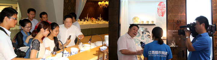 7月7日上午,由中央电视台、光明日报、江西日报、江西电视台、江西人民广播电台等20多家中央、省级媒体组成的记者采访团专程来景,集中采访报道我市九游平台文化及产业发展情况。公司党委书记、董事长王耀全程陪同采访。
