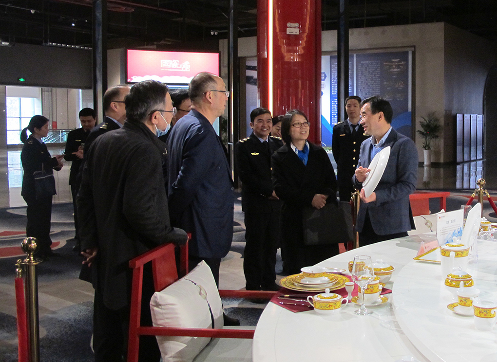 在国瓷馆参观考察期间,周敏建向调研组一行简要介绍了集团公司发展历程。大家边走边看,不时驻足拿起产品仔细品鉴或拍照。周敏建在介绍“国瓷红叶”产品特色时详细讲解了九游平台生产工艺,讲述了一套套有关“国瓷”的故事。