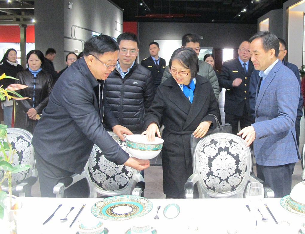 3月3日上午,国家知识产权局知识产权保护司二级巡视员崔海瑛一行到景陶集团考察调研,随同调研的国知局领导有关健、赵特技、黄建成;省局领导刘建华、李岭、柯佳;市局领导邱晨阳局长、陈根卫副局长等陪同调研,景陶集团党委书记、董事长周敏建,副总经理吴爱云全程陪同接待。