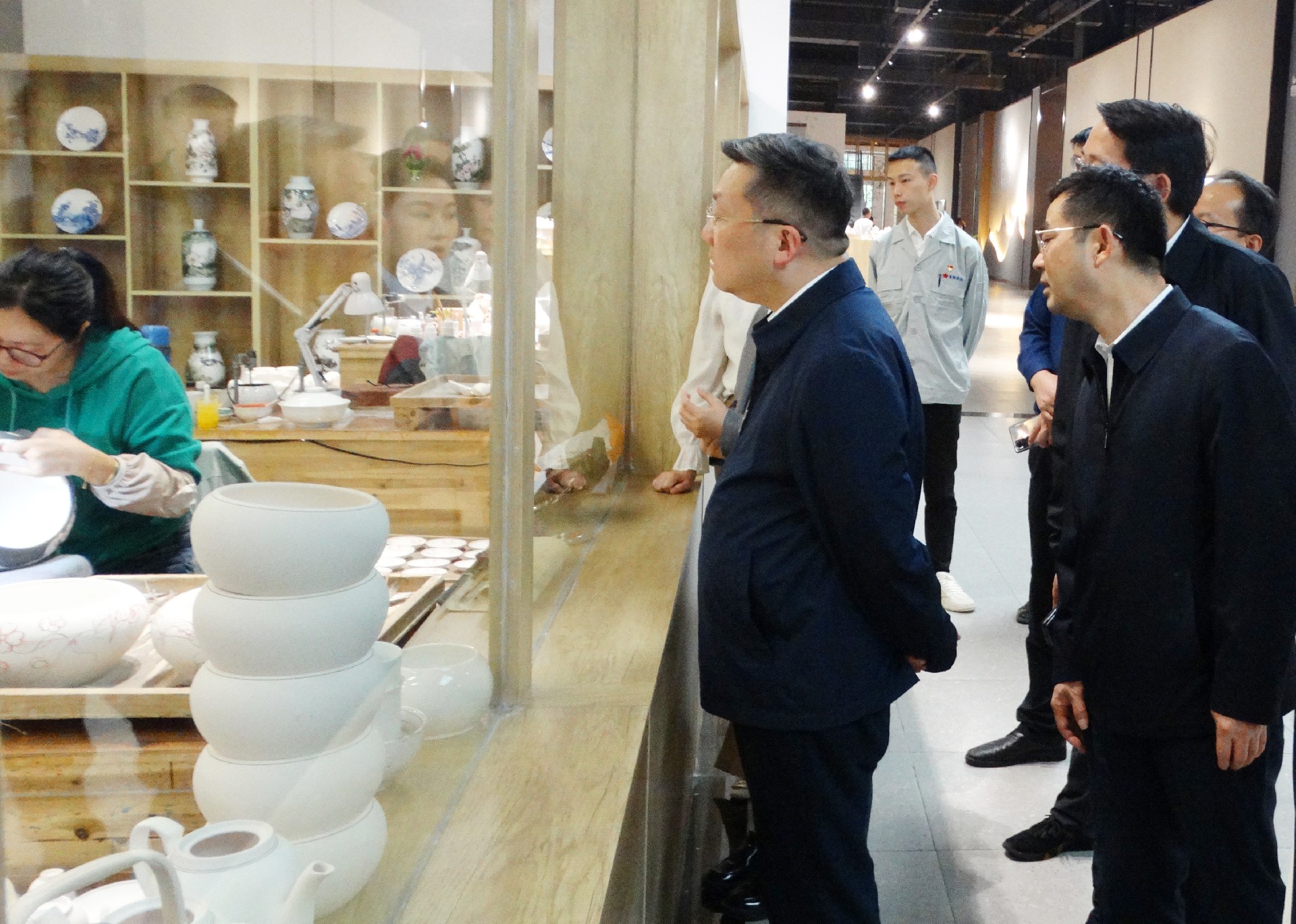 10月19日下午,长沙市委常委、宣传部部长陈澎一行到景陶集团考察,长沙市委宣传部分管日常工作的副部长、市新闻出版局局长周海毅,市委宣传部部务会成员刘玉龙,马栏山视频文创园党工委书记曾雄,望城区委常委、宣传部部长陈旷,市委宣传部办公室主任陈敏,市委宣传部政研室主任贺明明,市委宣传部文产处处长王青,市委宣传部版权处处长谭晓丹,市委宣传部干部处处长王林平,市委宣传部办公室副主任刘斌,市委网信办综合处副处长韩勇随同,景德镇市委宣传部常务副部长董军发陪同,景陶集团党委委员胡轶接待。