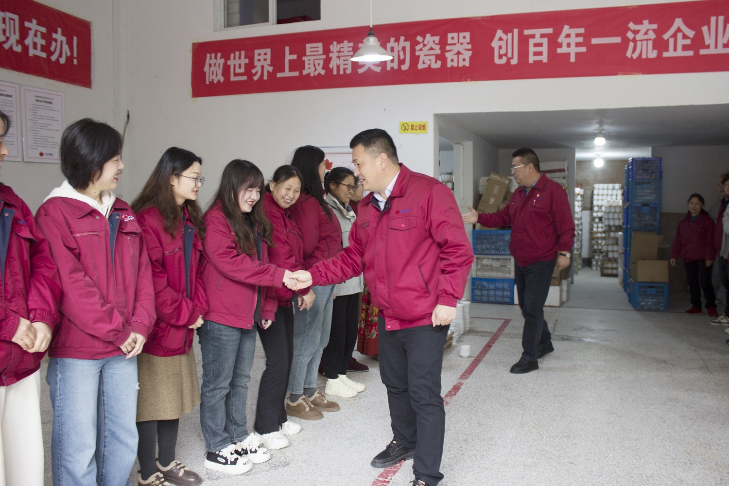 在金品陶公司、红叶公司一厂、三厂、研究所和窑具厂,领导们与夹道欢迎的员工致以新春祝福。希望生产口在提质增效上要有新担当。