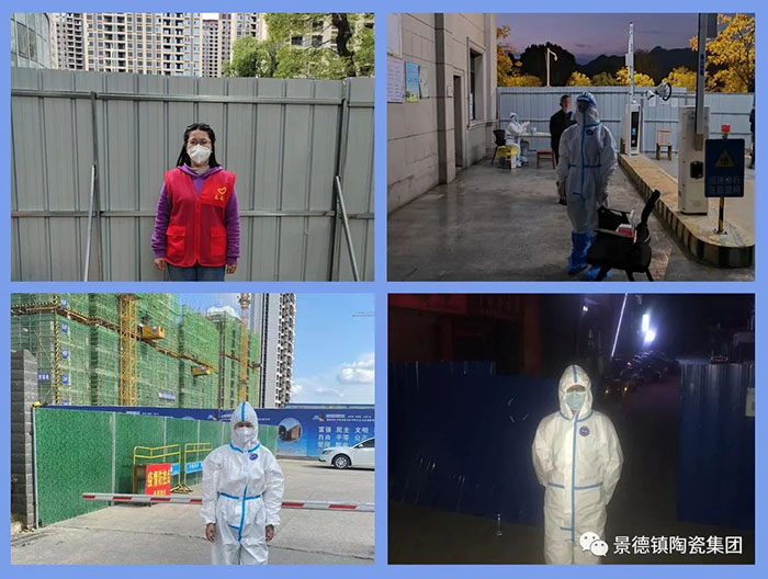 在疫情防控的最前线,景陶志愿者们用行动践行着为民服务的初心使命,充分展现了国企党员干部和员工的责任和担当。他们毎天坚守“卡口”工作岗位,严格落实出入口管理职责,他们舍小家、顾大家,同心协力,筑牢疫情防控第一道防线,全力当好疫情防控“守门员。”