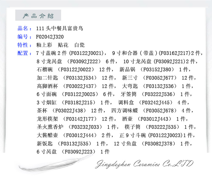 111头中餐具富贵鸟