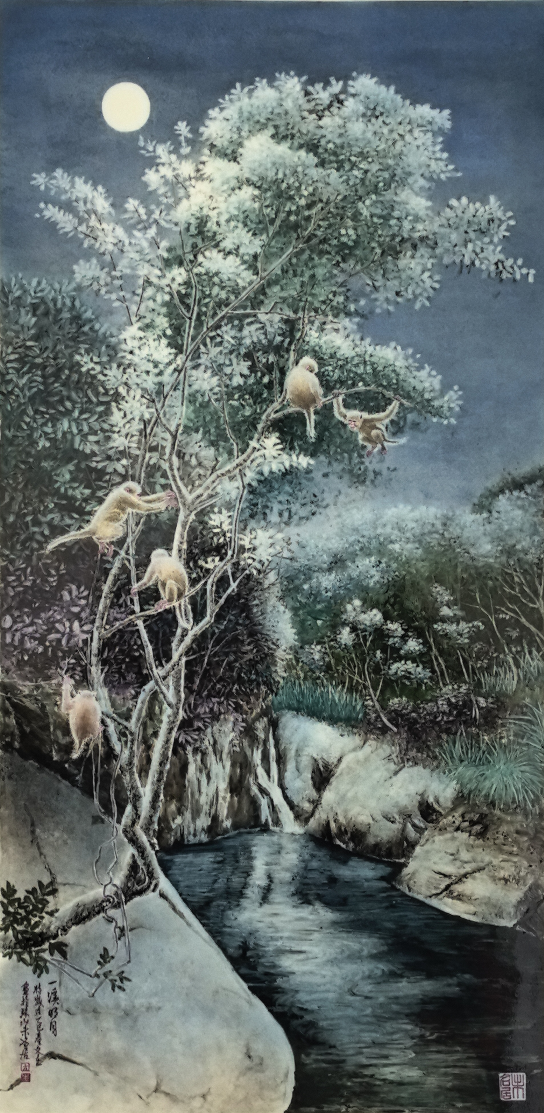 2021年作品《月昇溪林》釉上彩瓷瓶在华逸国际拍卖。