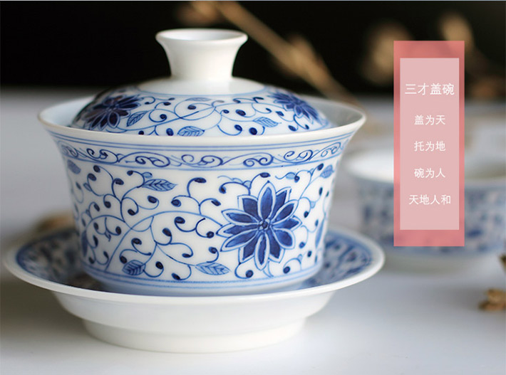8头玲珑功夫茶具开堂山水盖碗